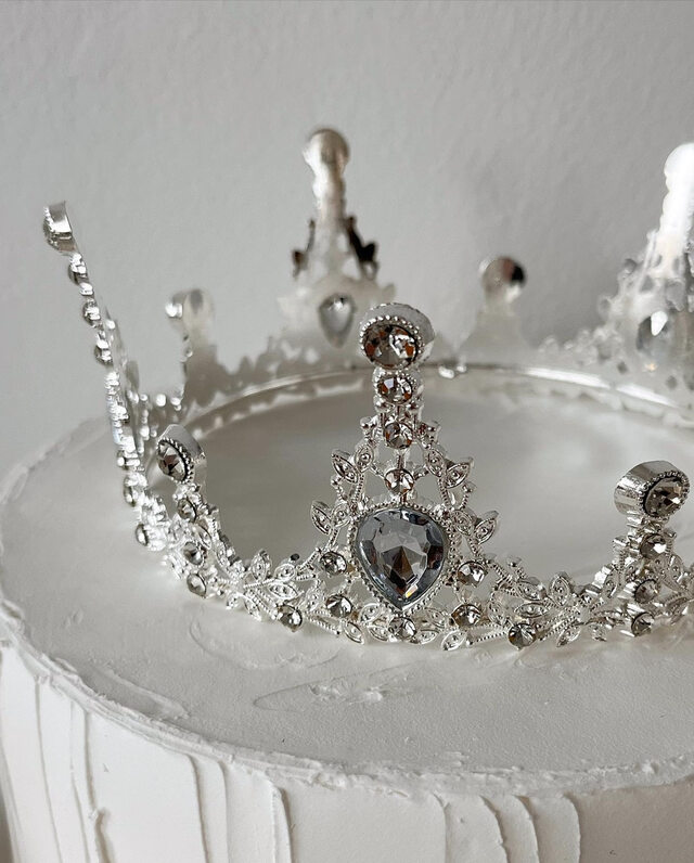 Coronita din metal este o decortiune eleganta si sofisticata, perfecta pentru a adauga un plus de stralucire si stil torturilor sau aranjamentelor florale. Aceasta coronita este realizata din metal , un material durabil si rezistent, iar strasurile si detaliile aurii adauga o nota de eleganta si rafinament.