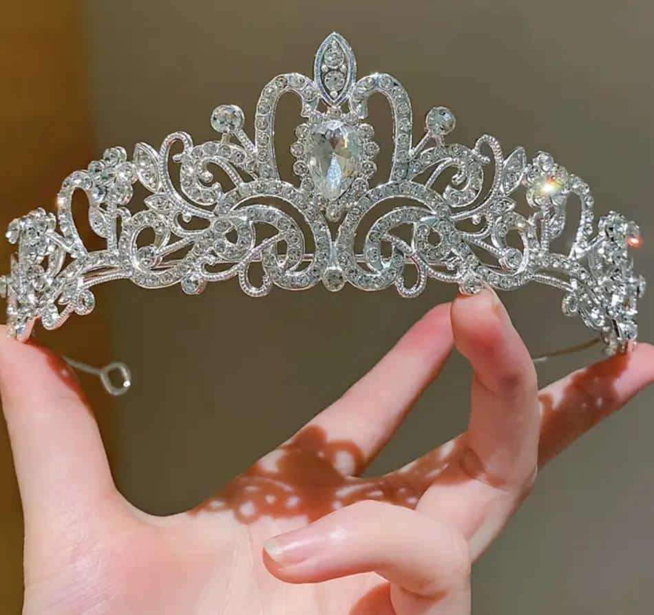 Coronita din metal argintiu cu strasuri 15 x 4.5 cm