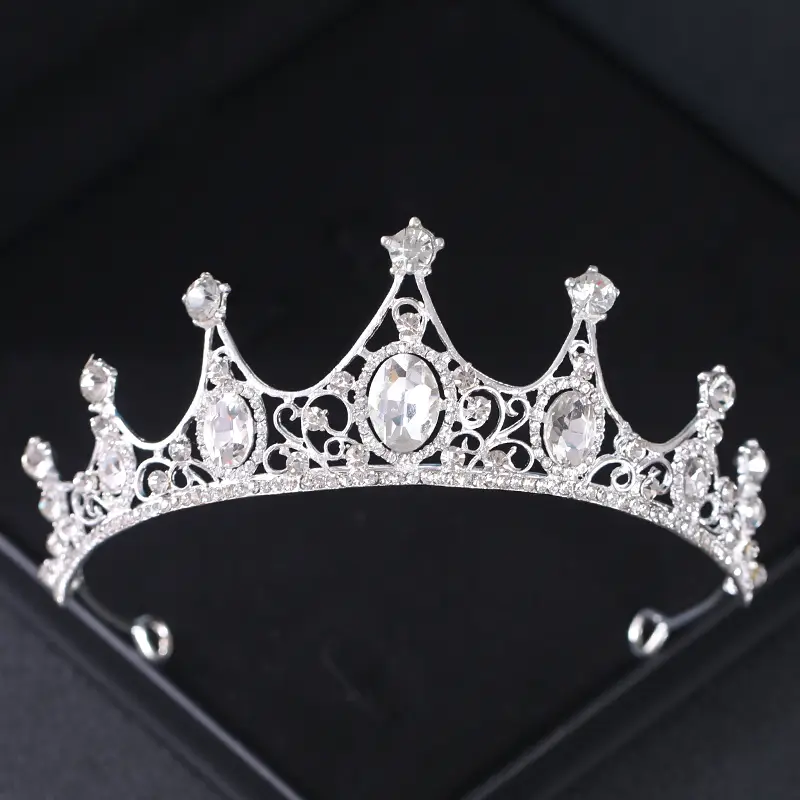 Coronita din metal argintiu cu strasuri 15 x 4.5 cm DGN300