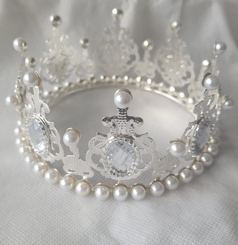Coronita din metal argintiu cu strasuri DGN363 11.5 x 5.5 cm