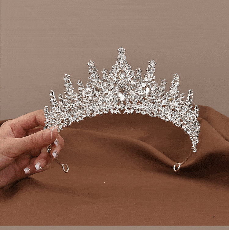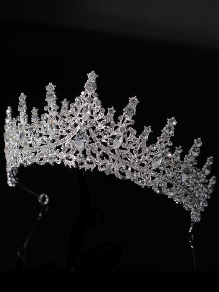 Coronita din metal argintiu cu strasuri 15 x 6.5 cm