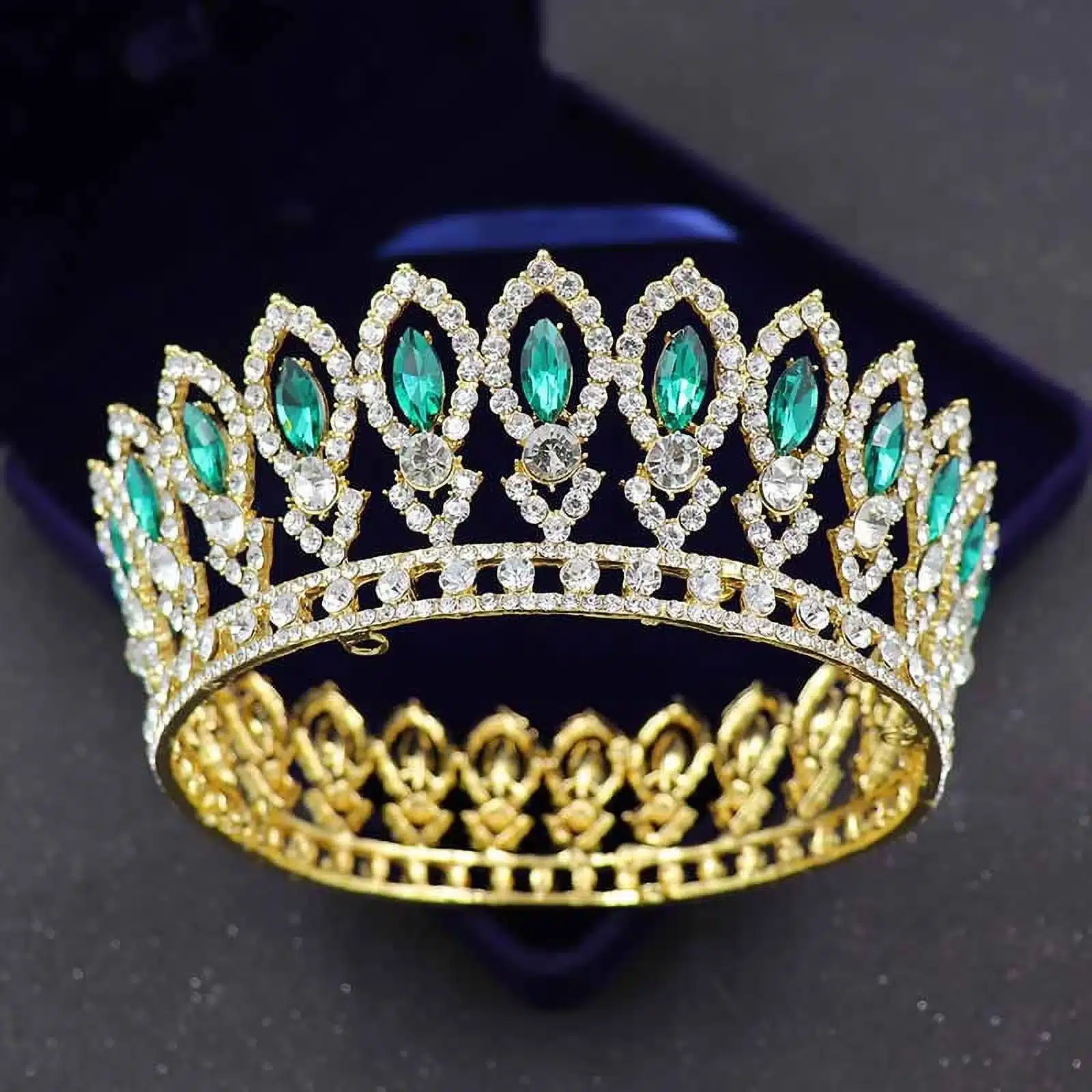Coronita din metal cu strasuri verde
