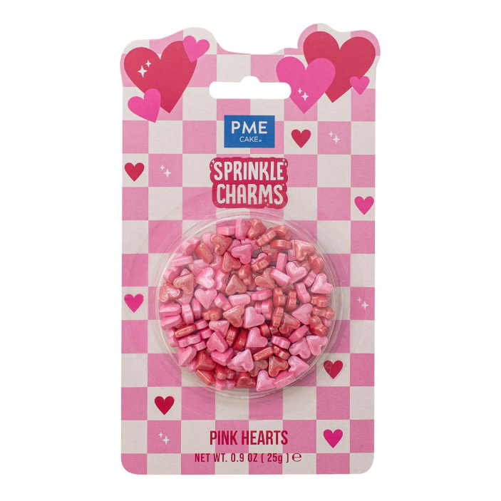 Decoratiuni mix din zahar Inimi roz Sprinkles Charms 25g, PME